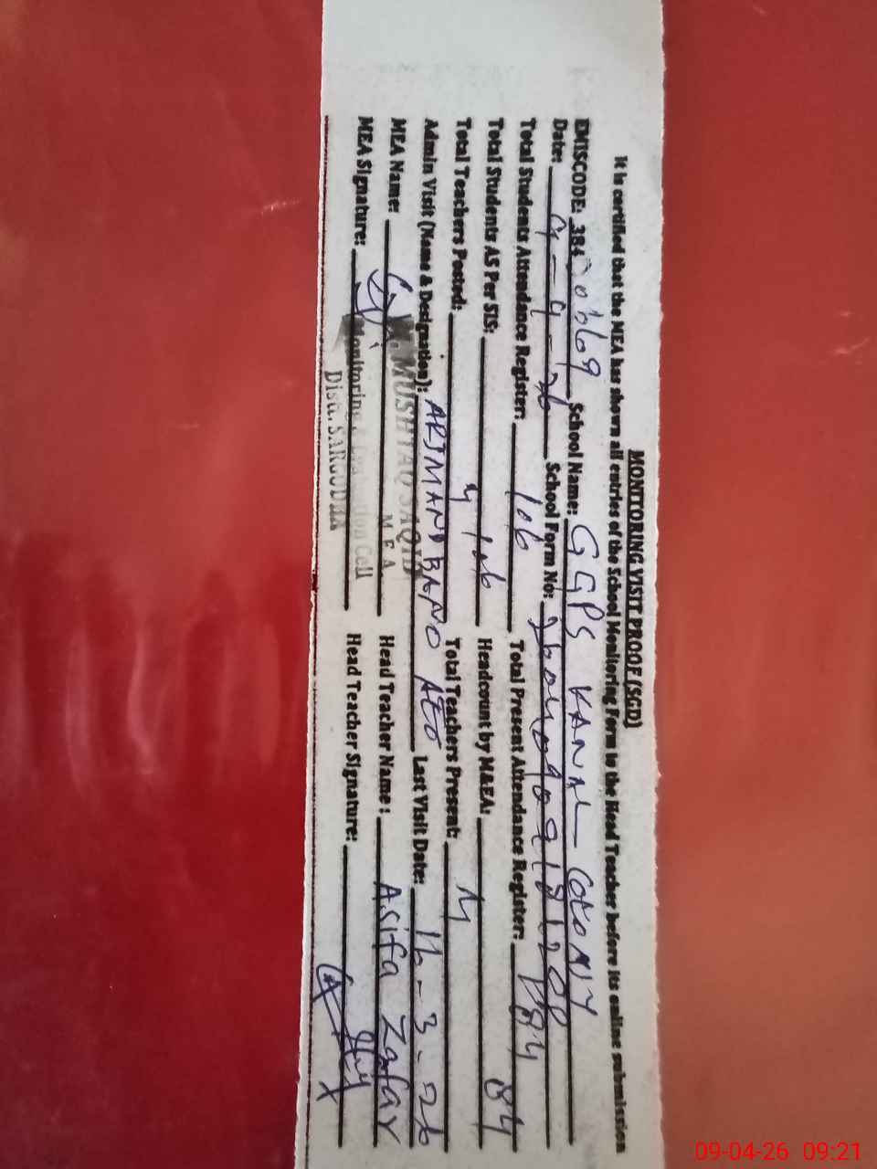 | EMIS Code: 38420669 | Name of School: GGPS MC KANAL COLONY SARGODHA | |||