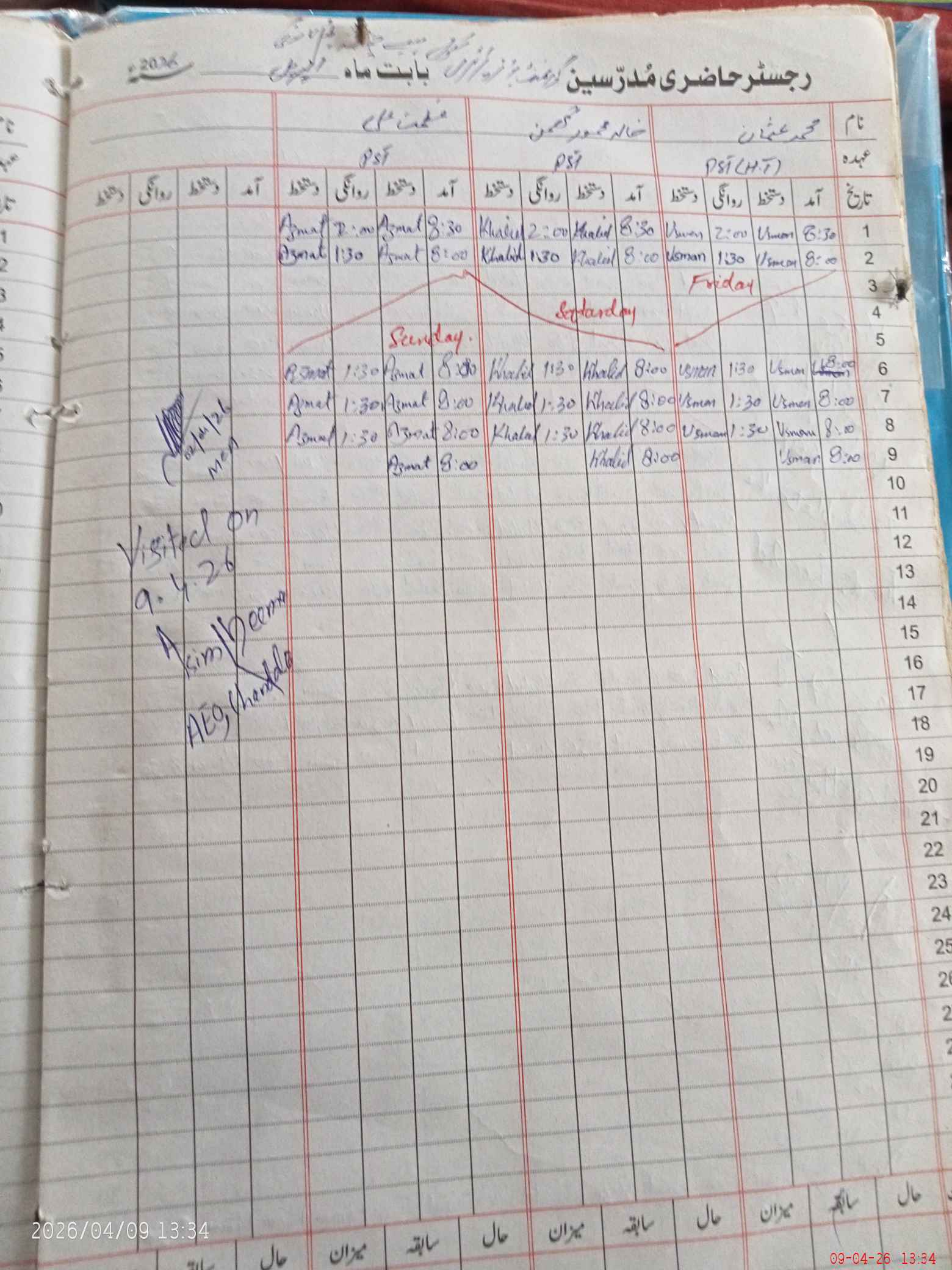 | Attendance Register | Head Teacher | MEA with School | Visit Proof |