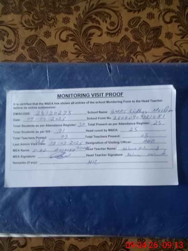 | EMIS Code: 34130275 | Name of School: GMPS LIDHARR MUSLIM | |||