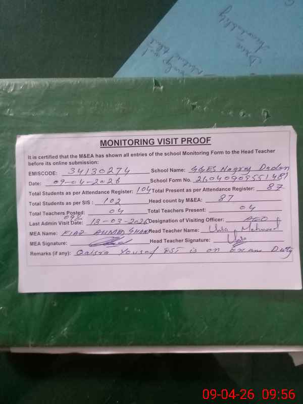 | EMIS Code: 34130274 | Name of School: GGES NAGRAY DADAN | |||