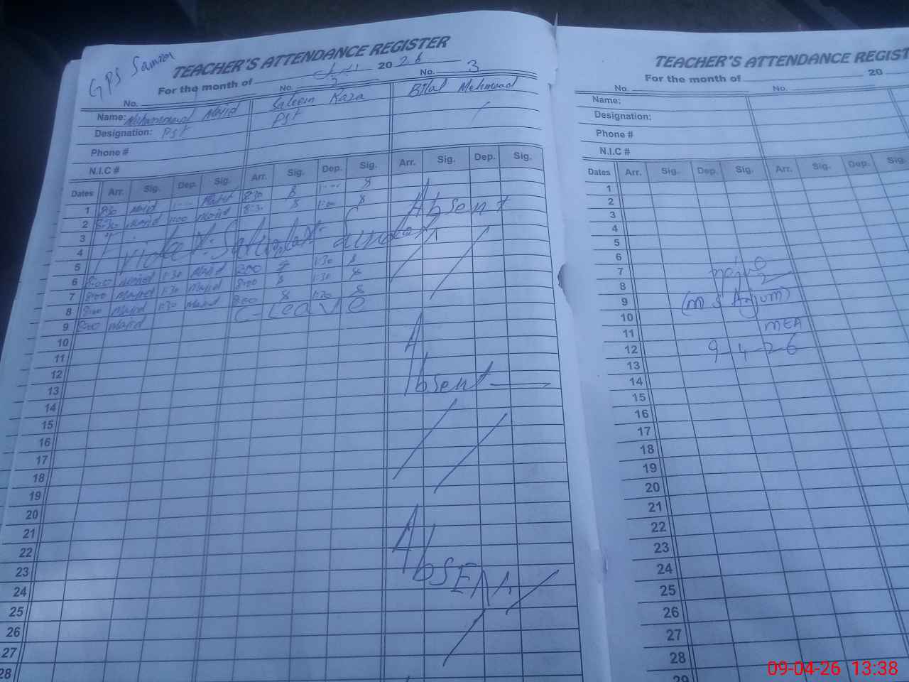 | Name: Mu**** Ma**** Designation: (School Headmaster's/Headmistress's) PST Phone/Cell Number: 03**** |