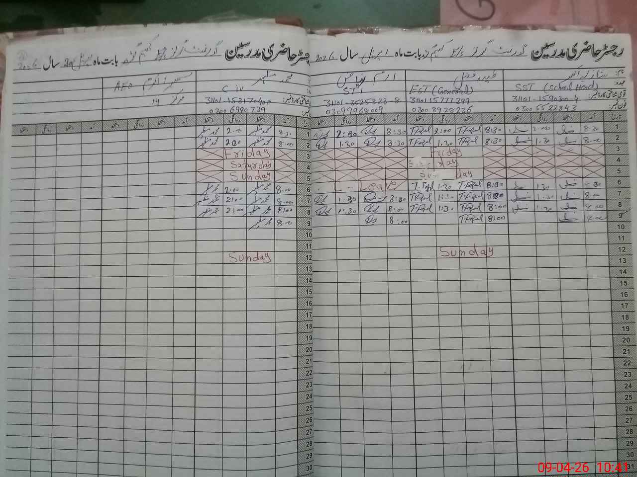 | Name: SH**** AK**** Designation: (School Headmaster's/Headmistress's) SST( G) Phone/Cell Number: 03**** |