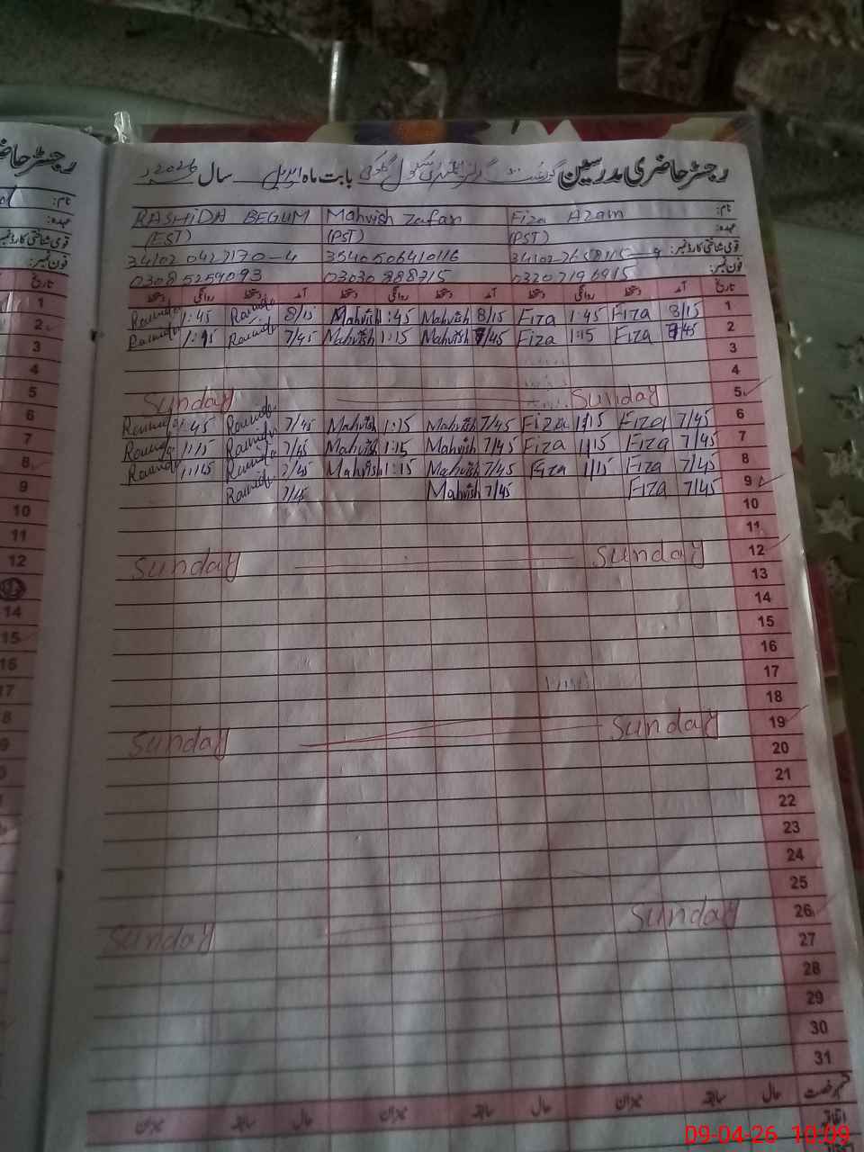 | CNIC | Full Name | Designation | R/C | Absence During Last Calender Month |