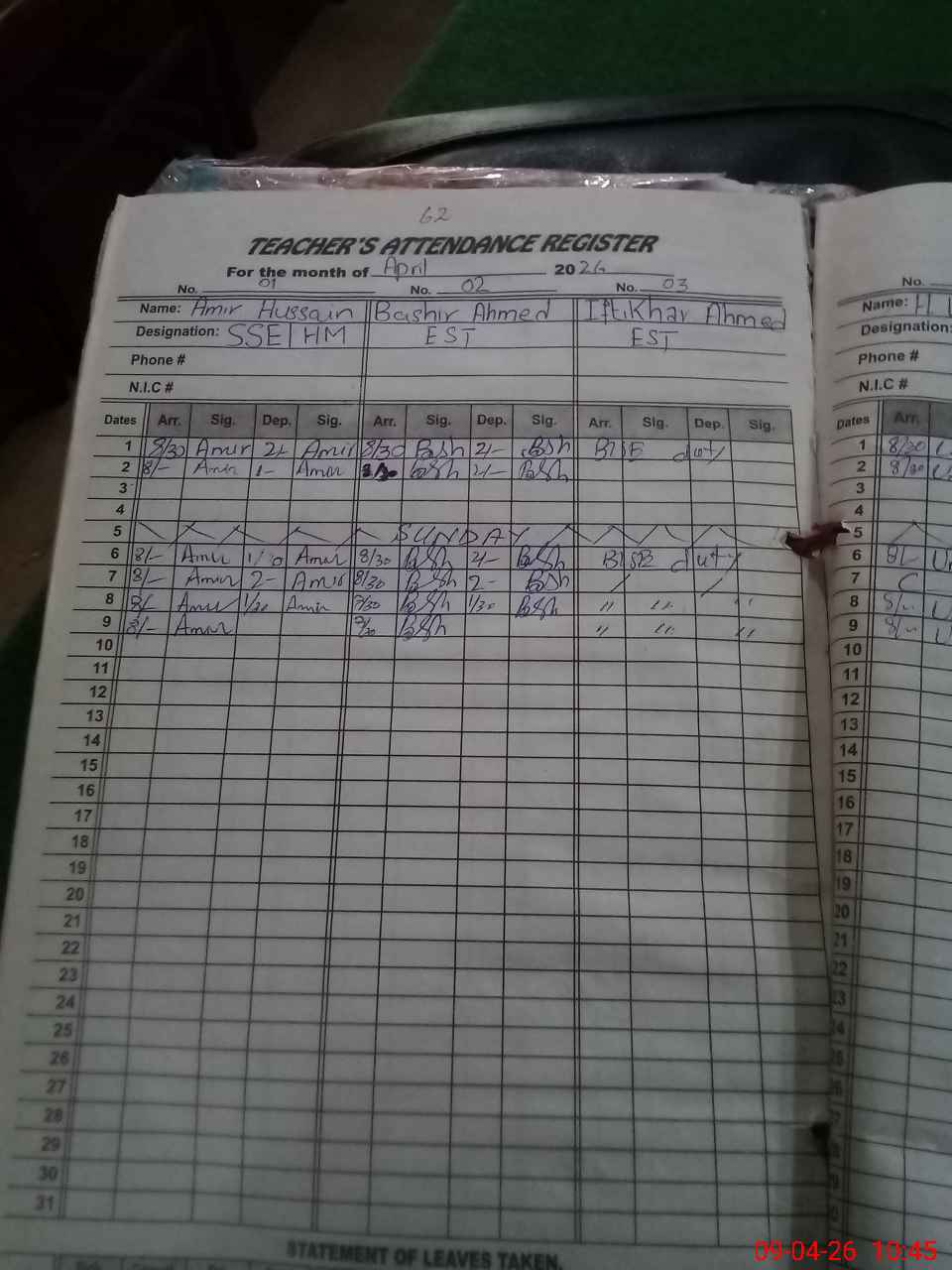 | 34**** | If**** Ah**** | EST (Math) | Regular | 2 | 6 | 0 | 0 | 0 | 0 | 0 | 0 | 2 | Exam Duty |