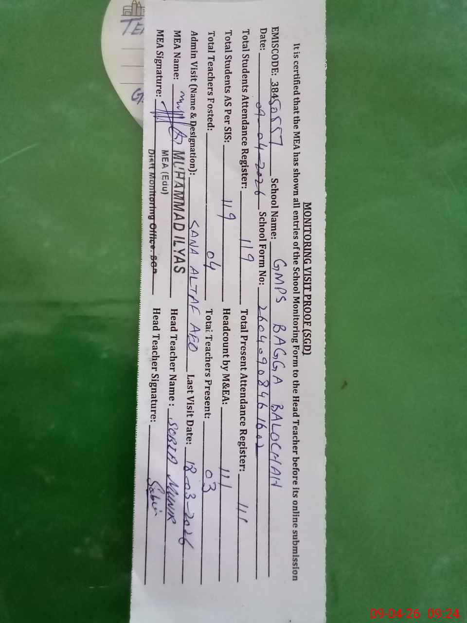 | EMIS Code: 38450557 | Name of School: GMPS BAGA BALOCHAN | |||