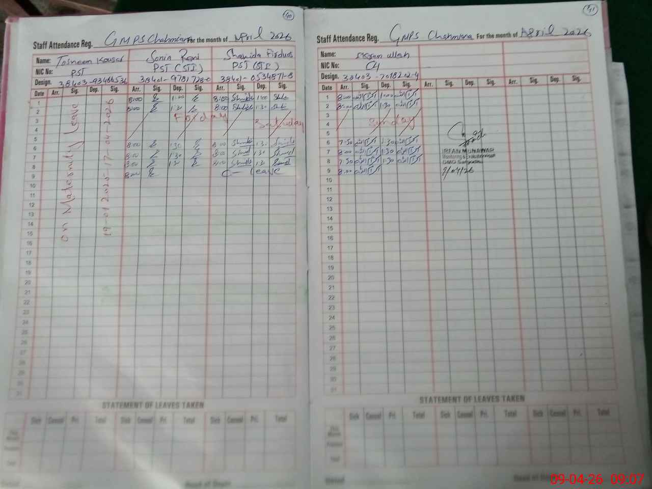 | 38**** | Ta**** Ko**** | PST Science/Maths | Regular | 0 | 0 | 0 | 0 | 0 | 0 | 0 | 0 | 0 | Maternity |