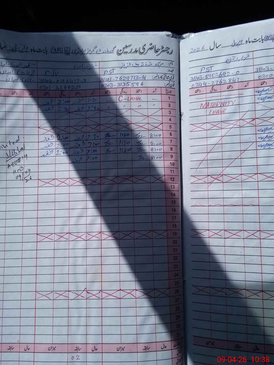 | Leave | Duty | Absent | Maternity | Medical | Ex- Pak |