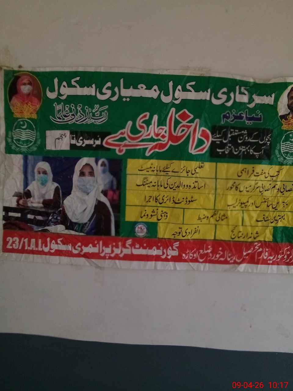 | District: OKARA | Tehsil: RENALA KHURD | Markaz: VICTORIA FORM -FEMALE | Level: Primary | |