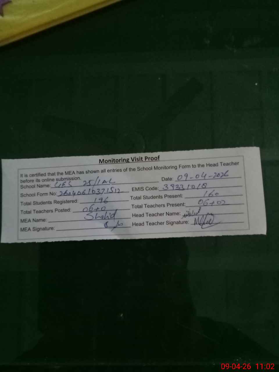 | EMIS Code: 39331018 | Name of School: GES CHAK 25/1-AL | |||