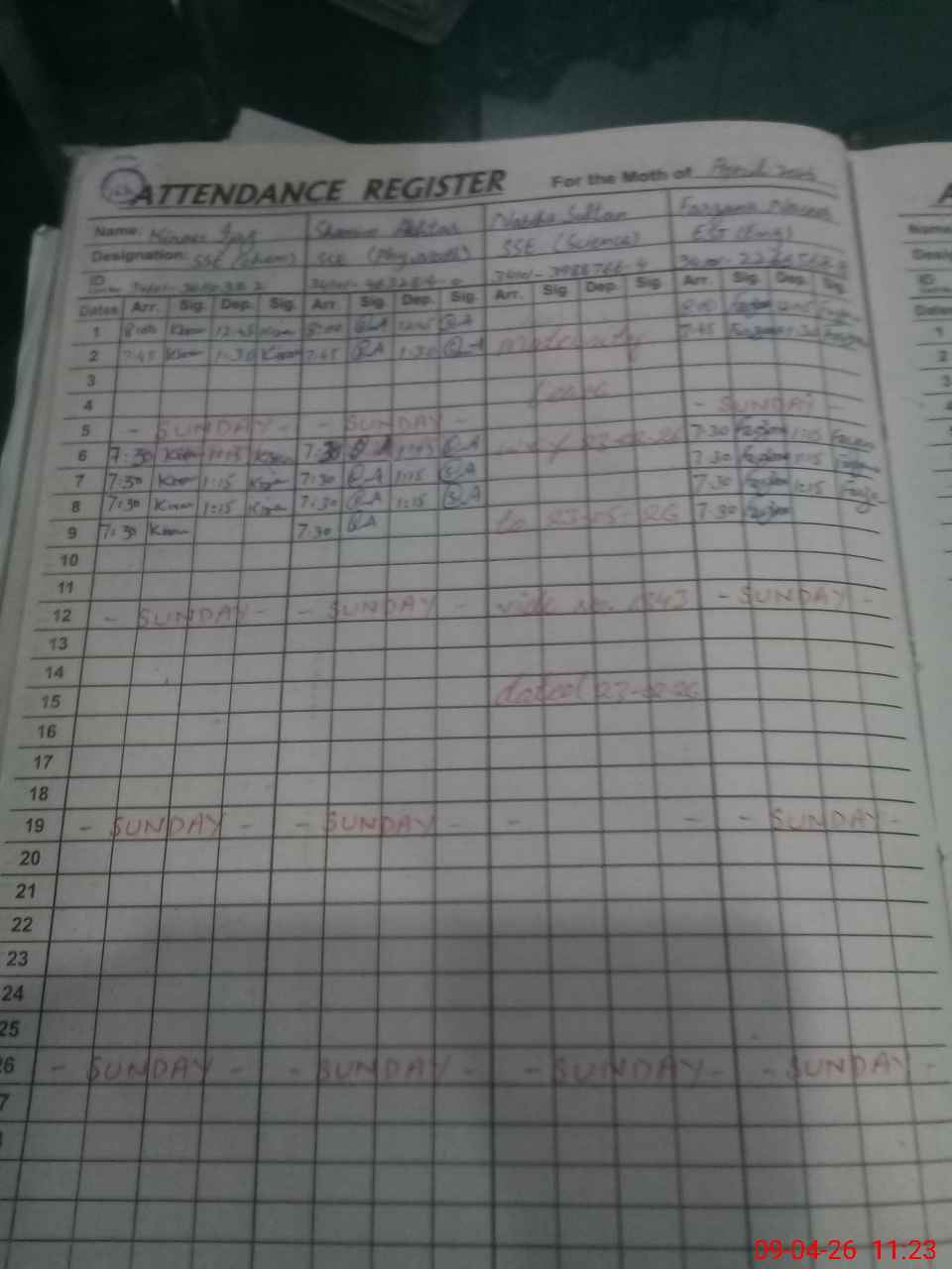 | Monitoring Date: 09-04-2026 | Start Time: 09-04-2026 11:20 AM | End Time: 09-04-2026 11:58 AM | Name of MEA: C-**** Al**** | |