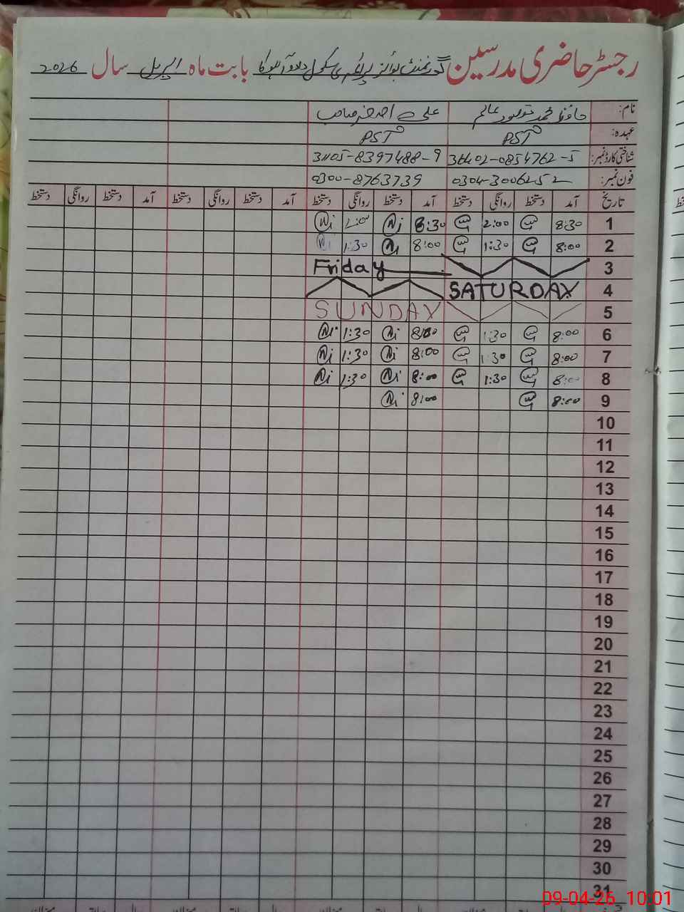 | Name: Ha**** MMa**** Al**** Designation: (School Headmaster's/Headmistress's) PST Phone/Cell Number: 03**** |