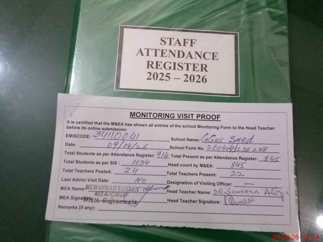 | EMIS Code: 34110041 | Name of School: GGHS SYED | |||