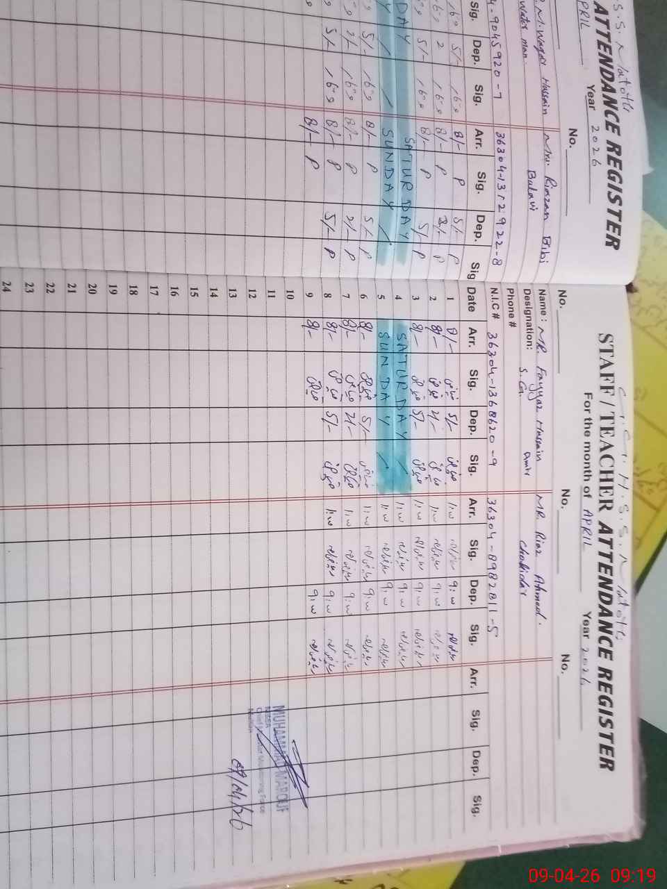 | Remarks (Use Separate Page if Required): PST Saba Iqbal and PST Tehmina Rehman not arrived at school UpTo 0835 hrs marked as absent students enrollment not updated on SIS | |||||