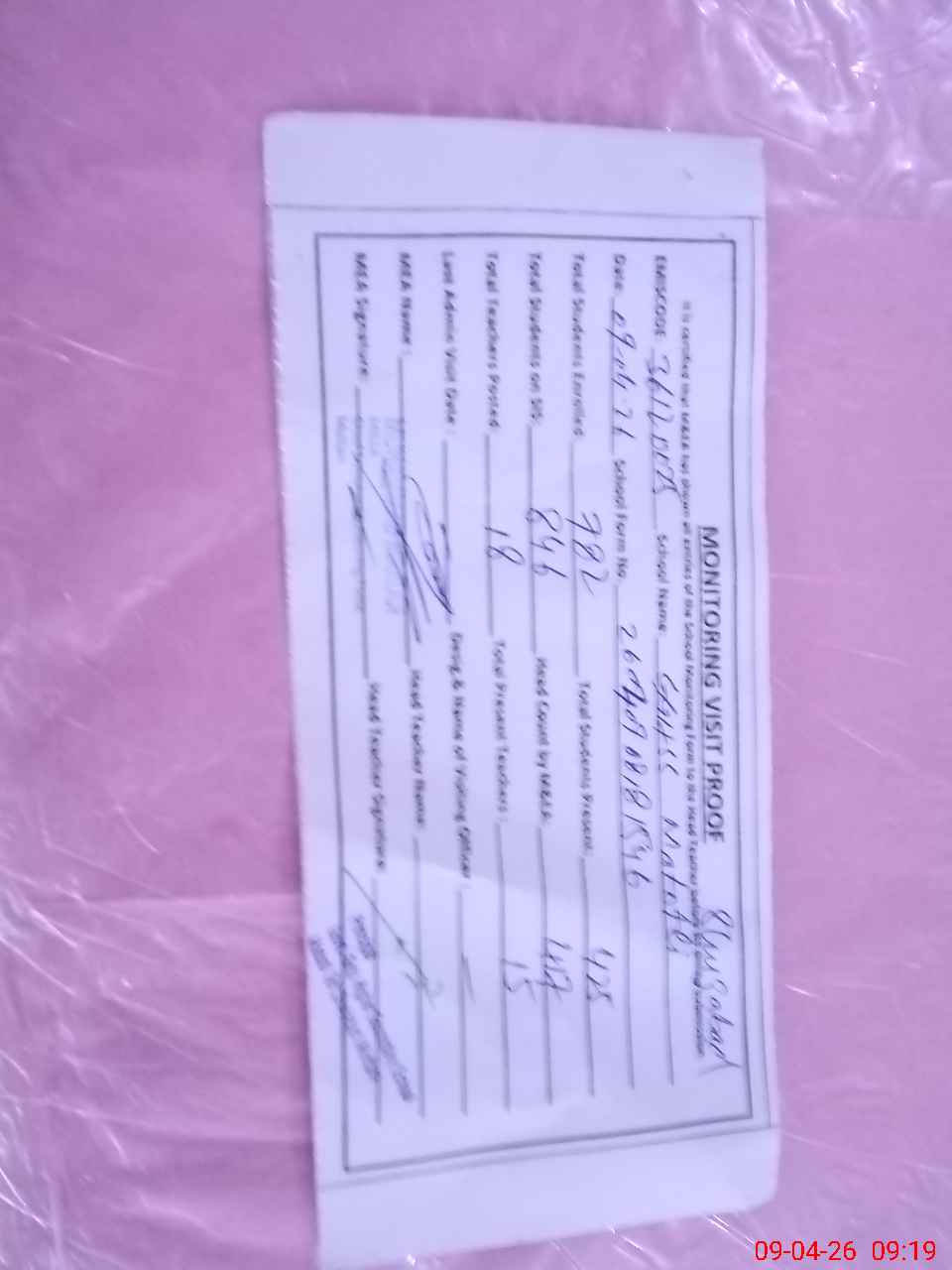 | Certified that this School was Inspected by the Undersigned MEA/DMO Today and the Information Stated Above is as Per Record. | |||||