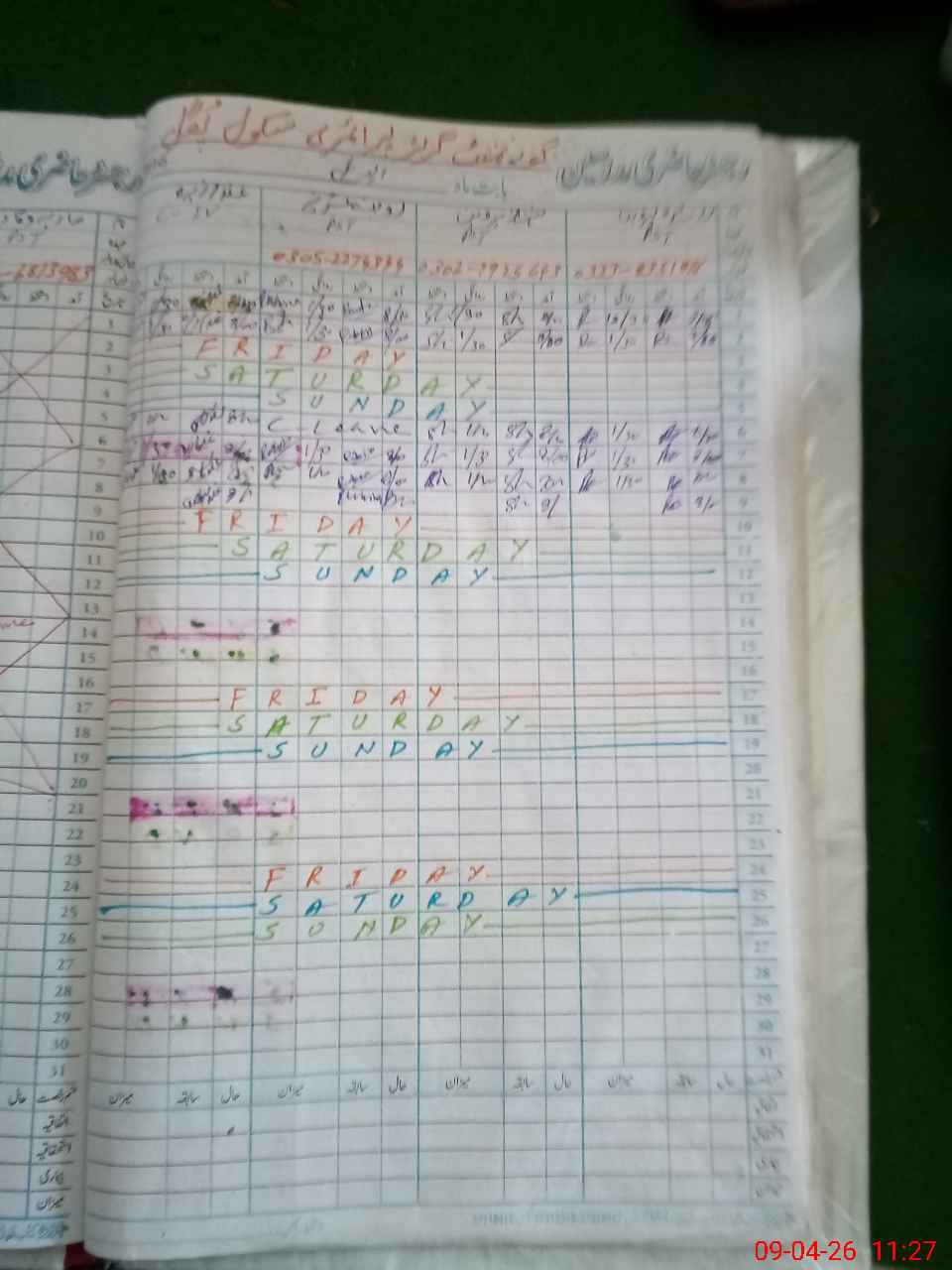 | CNIC | Full Name | Designation | R/C | Absence During Last Calender Month |