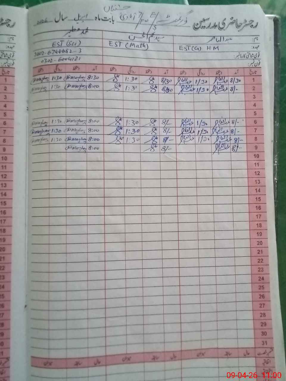| Name: AB**** NA**** Designation: (School Headmaster's/Headmistress's) EST G Phone/Cell Number: 03**** |