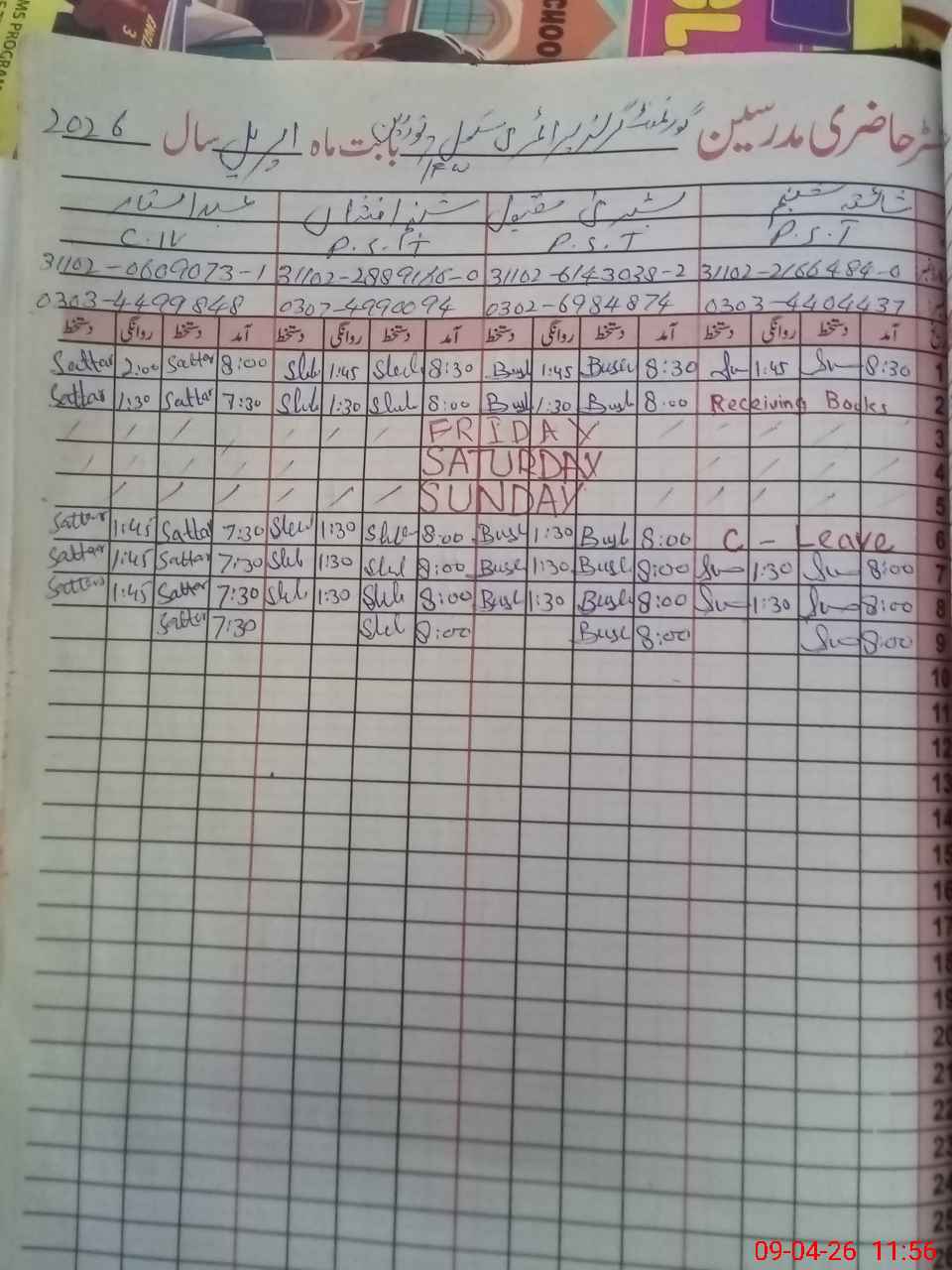 | CNIC | Full Name | Designation | R/C | Absence During Last Calender Month |