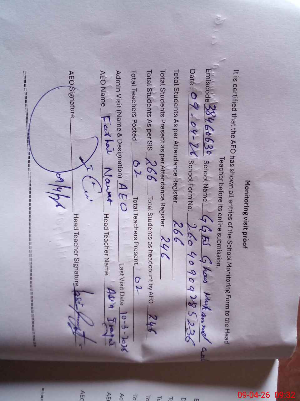 | EMIS Code: 38460630 | Name of School: GGES GHOUS MUHAMMAD WALA | |||