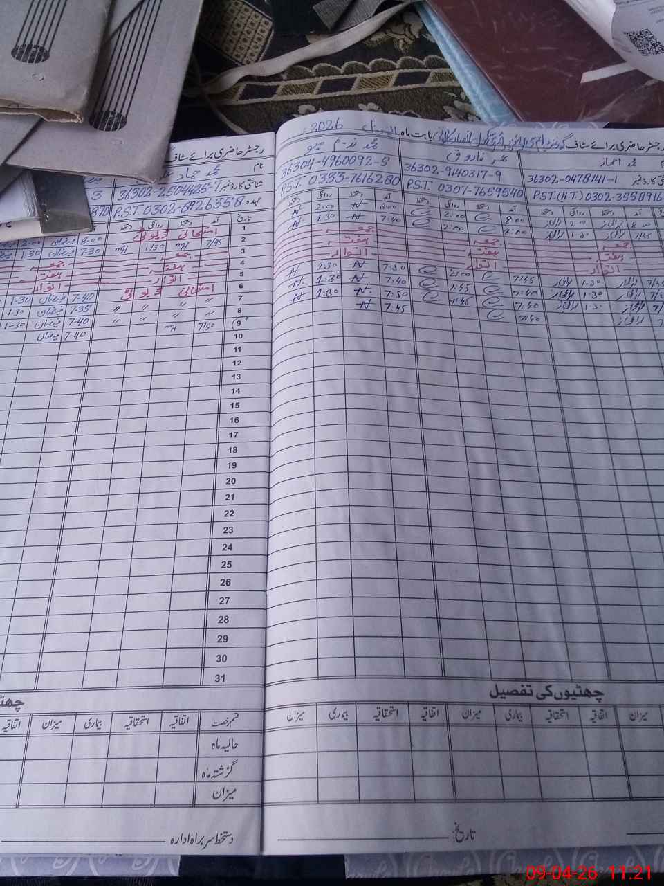 | CNIC | Full Name | Designation | R/C | Absence During Last Calender Month |