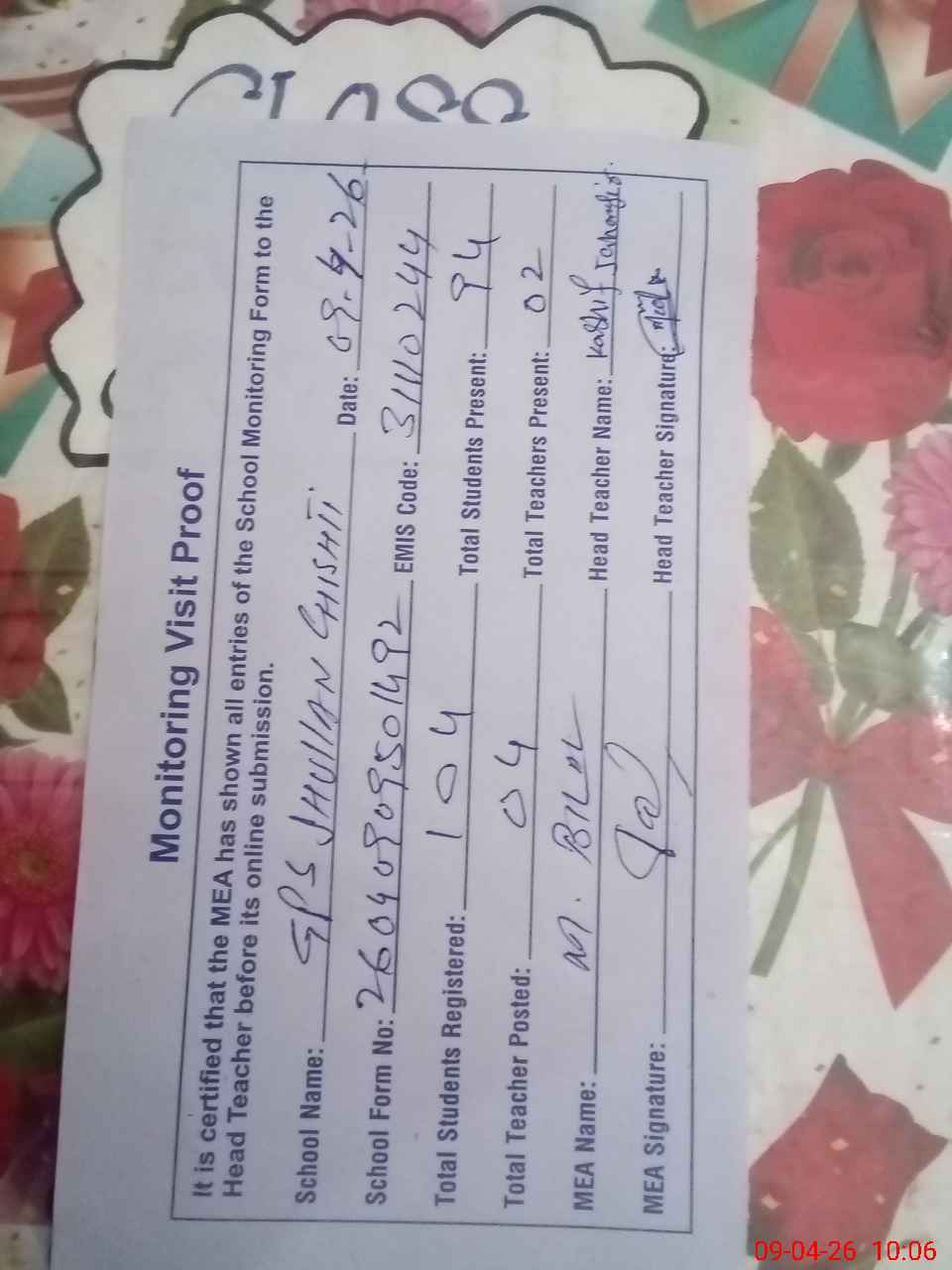 | EMIS Code: 31110244 | Name of School: GPS JHULLAN CHISHTI | |||