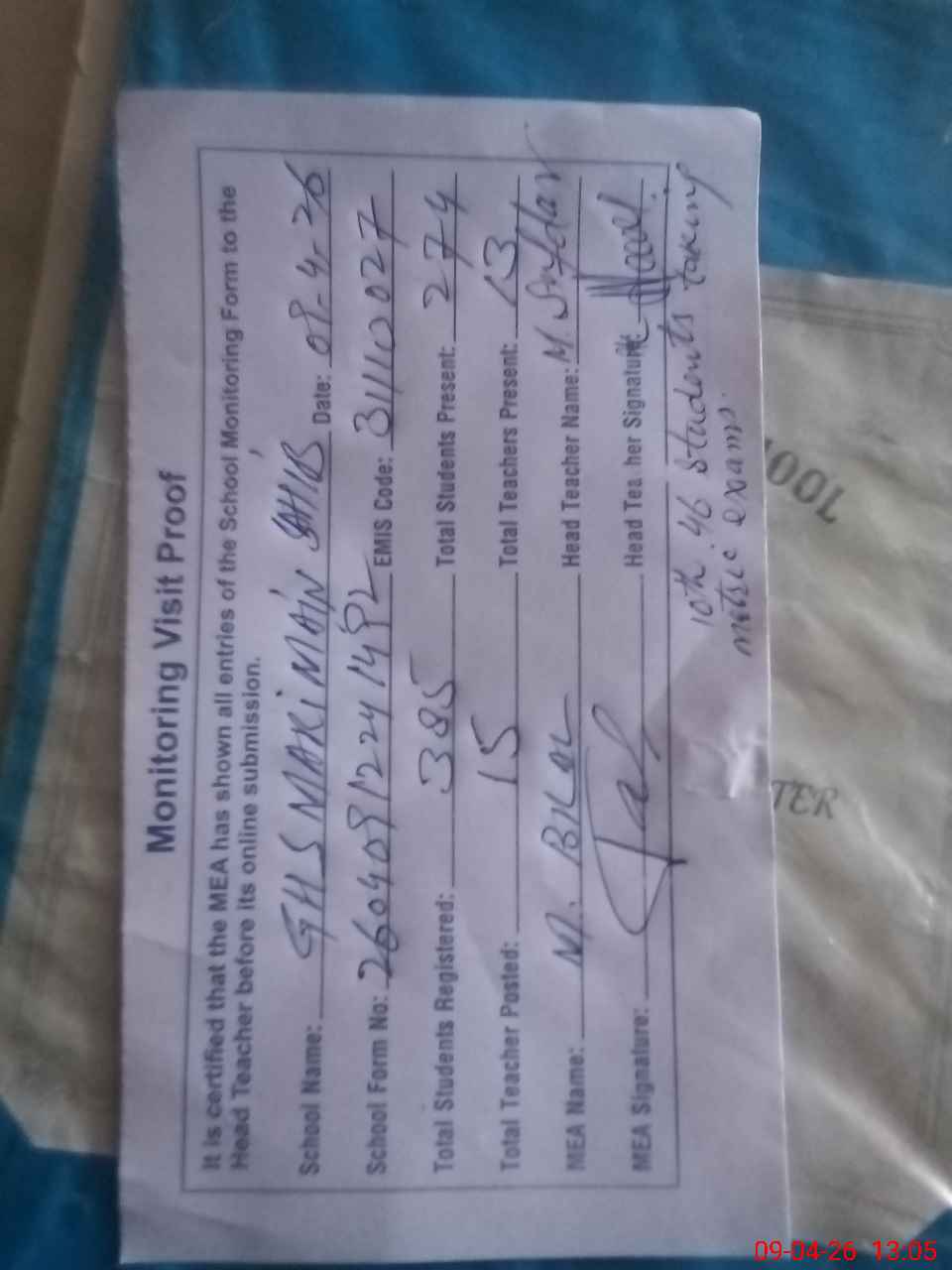 | EMIS Code: 31110027 | Name of School: GHS MARI MAIN SAHIB | |||