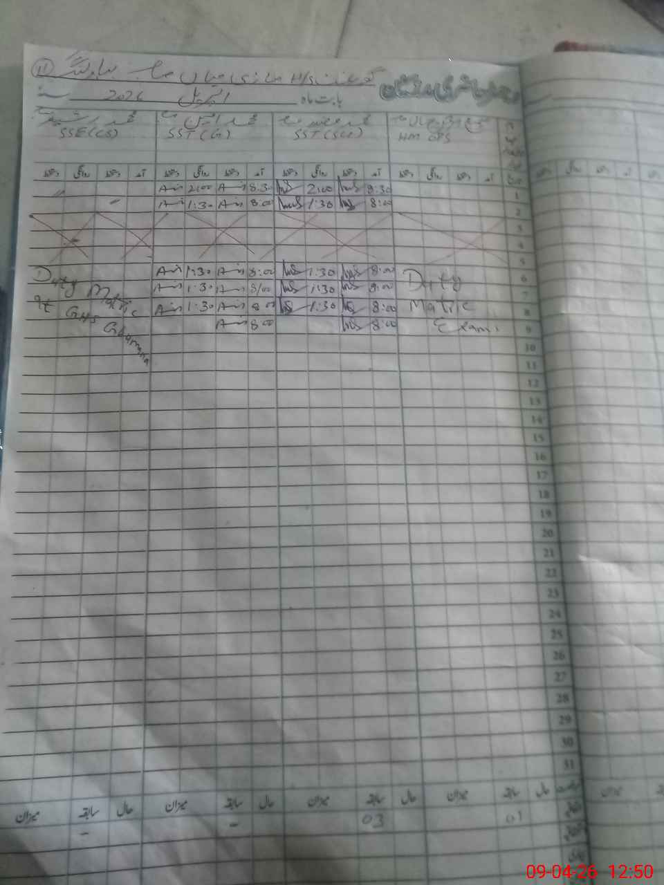 | 31**** | Sa**** UrRe**** Kh**** | SST Computer Science | Regular | 0 | 0 | 0 | 0 | 0 | 0 | 0 | 0 | 0 | Exam Duty |
