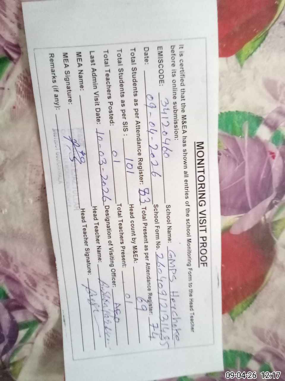| EMIS Code: 34120460 | Name of School: GMPS HERCHOKE | |||