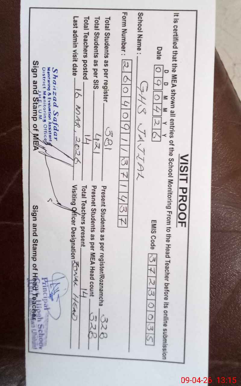 | EMIS Code: 37230035 | Name of School: GHS JAJIAL | |||