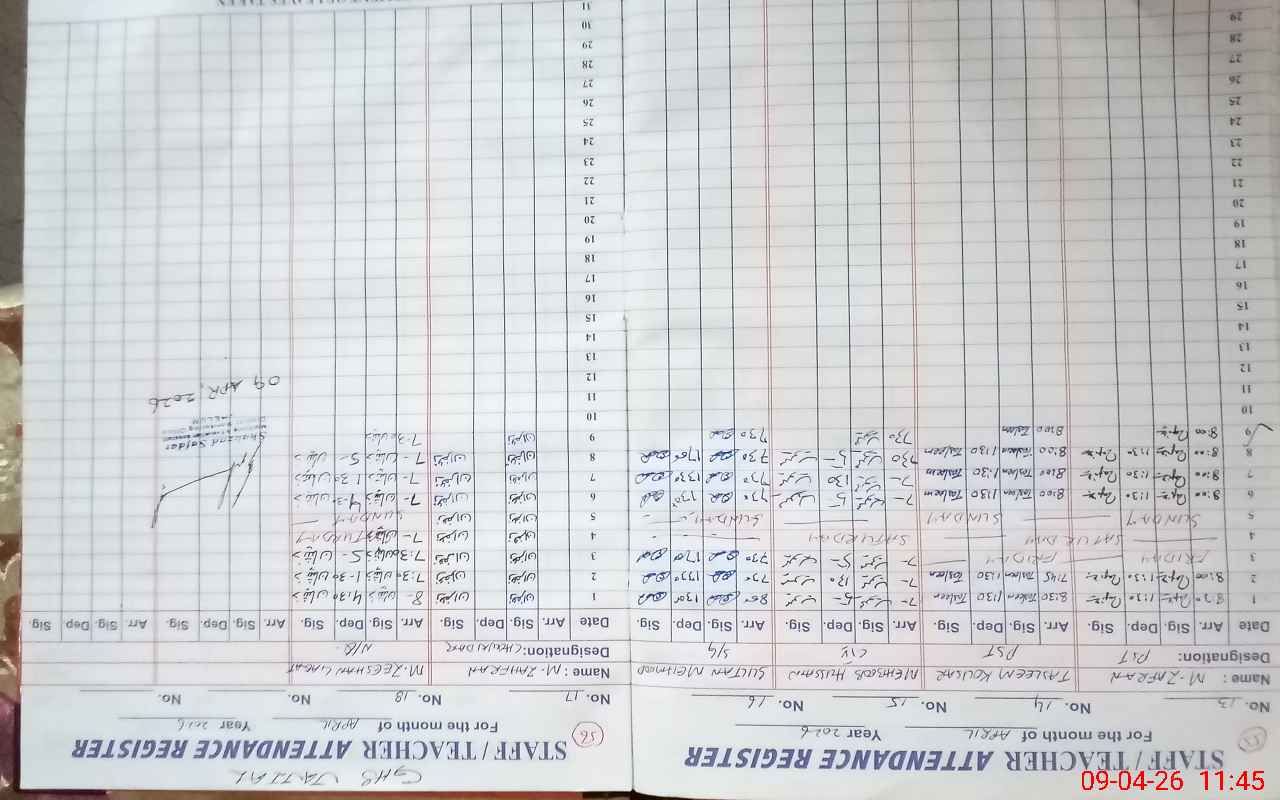 | Attendance Register | Head Teacher | MEA with School | Visit Proof |