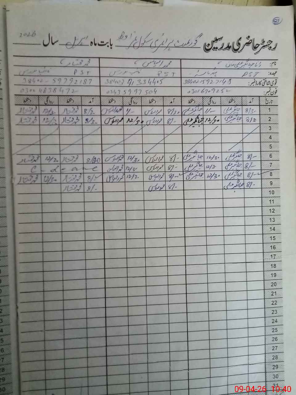 | Name: RA**** JA**** AL**** Designation: (School Headmaster's/Headmistress's) PST Phone/Cell Number: 03**** |