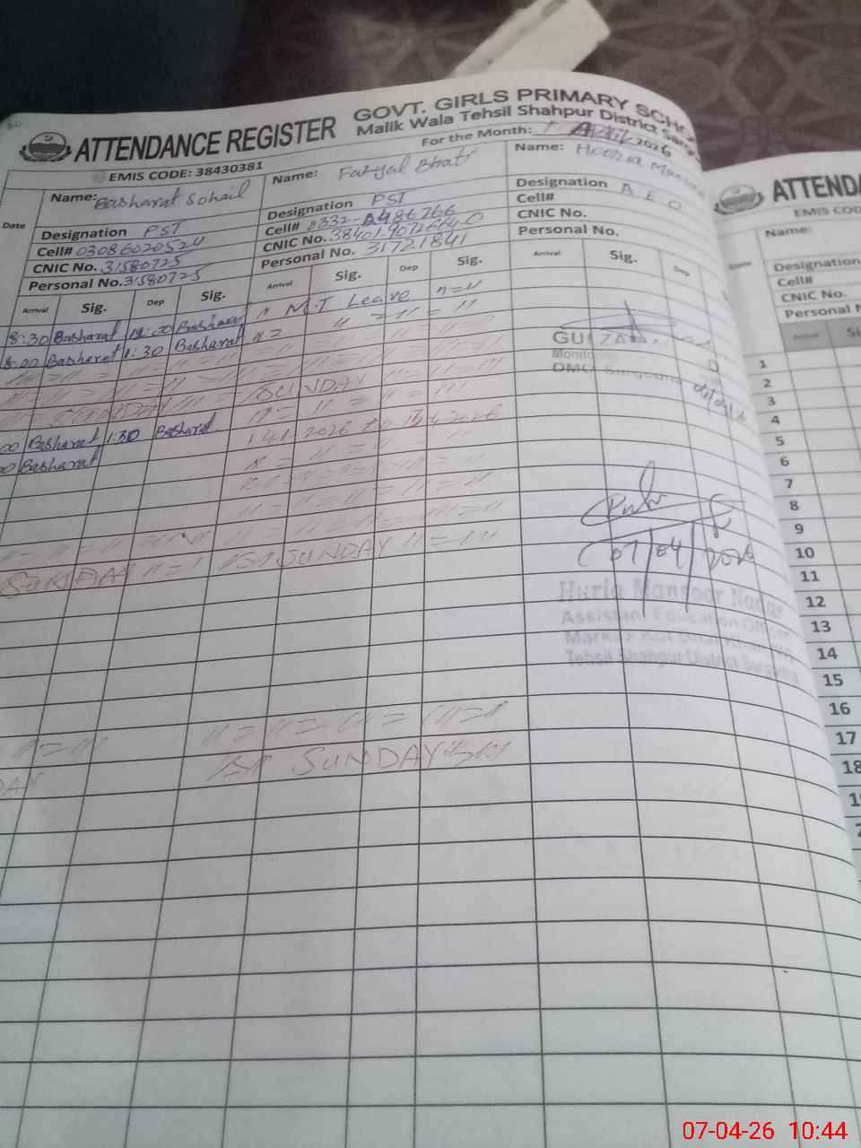 | Name: BA**** SO**** Designation: (School Headmaster's/Headmistress's) PST Phone/Cell Number: 03**** |