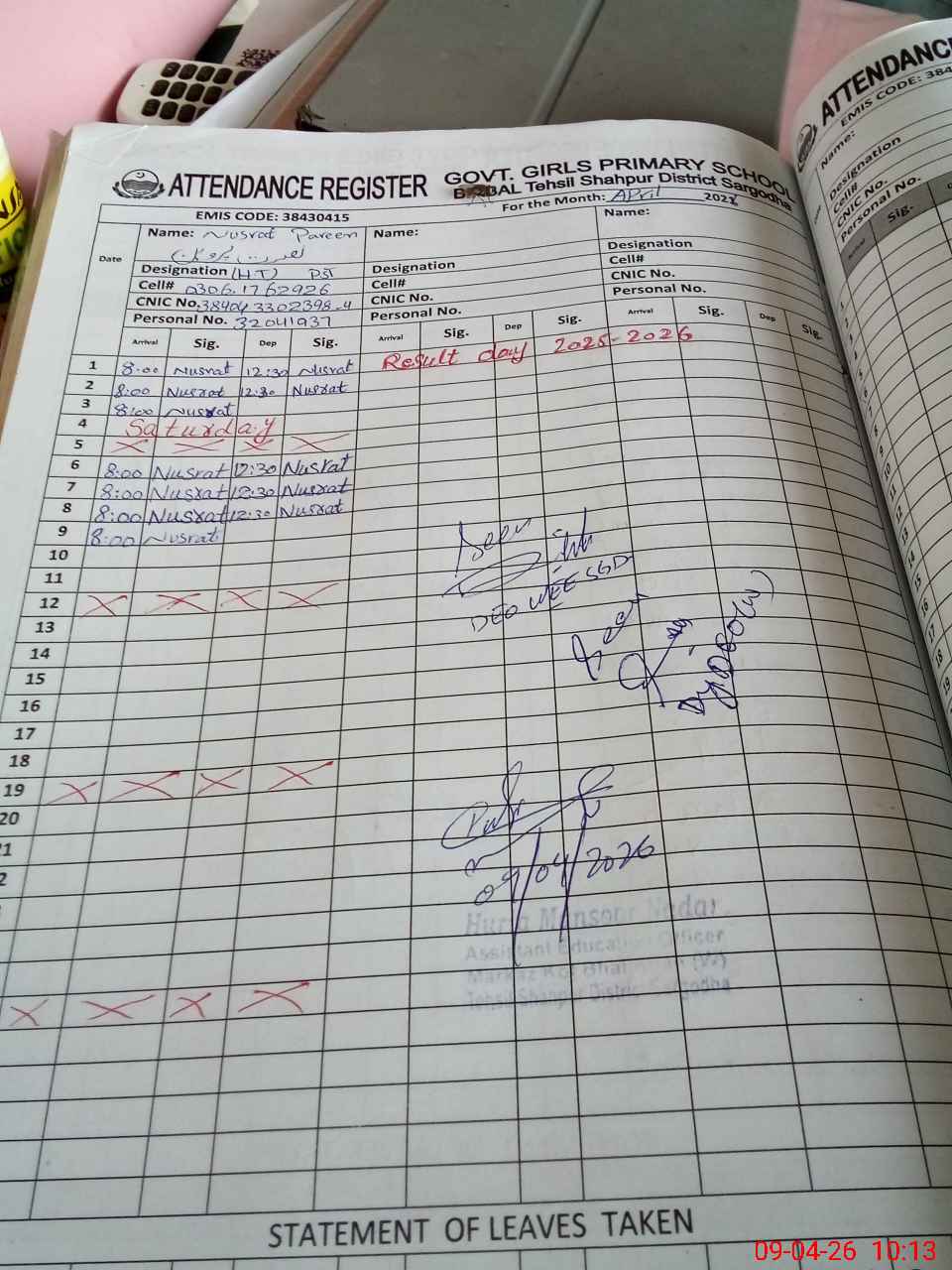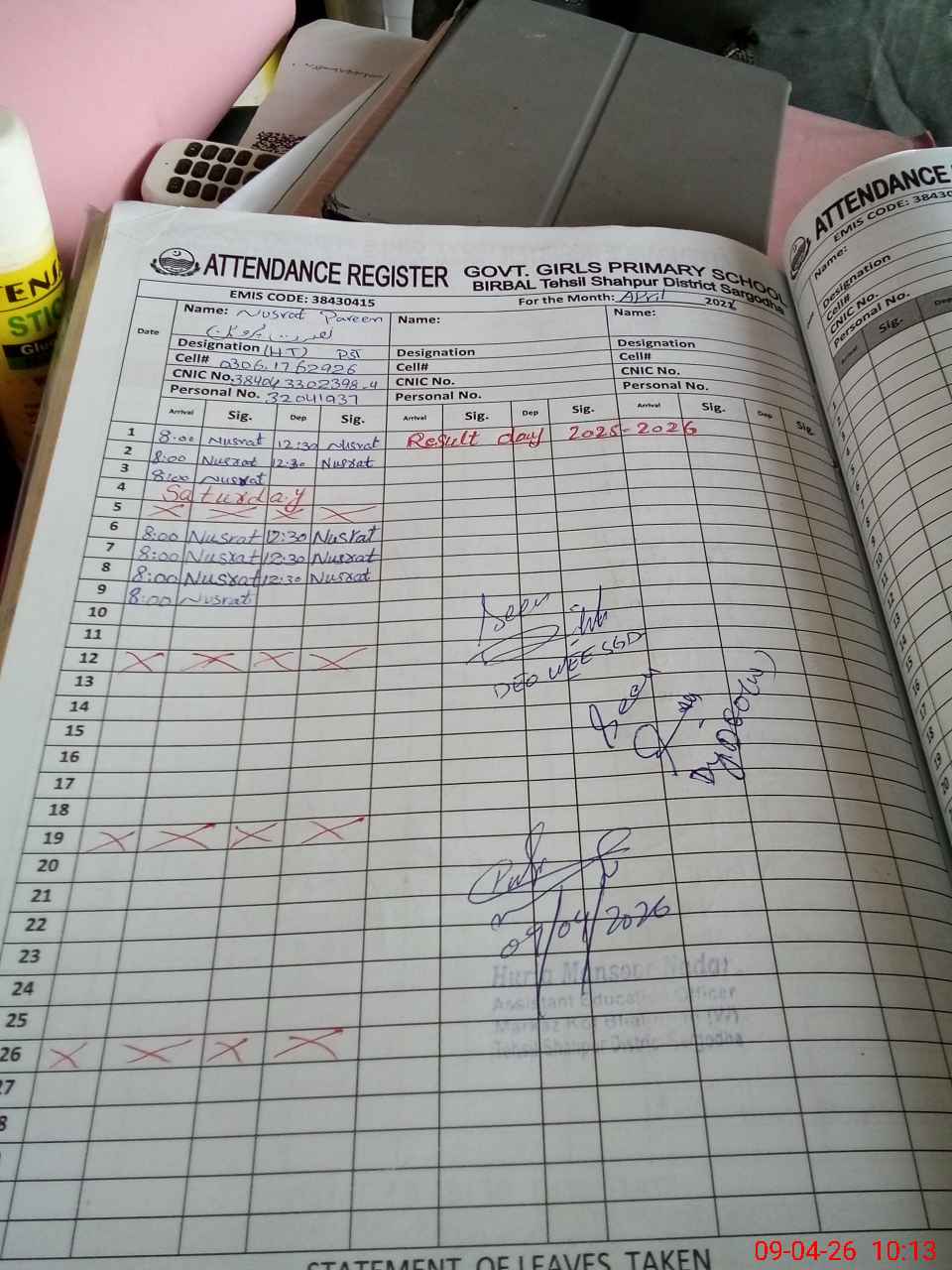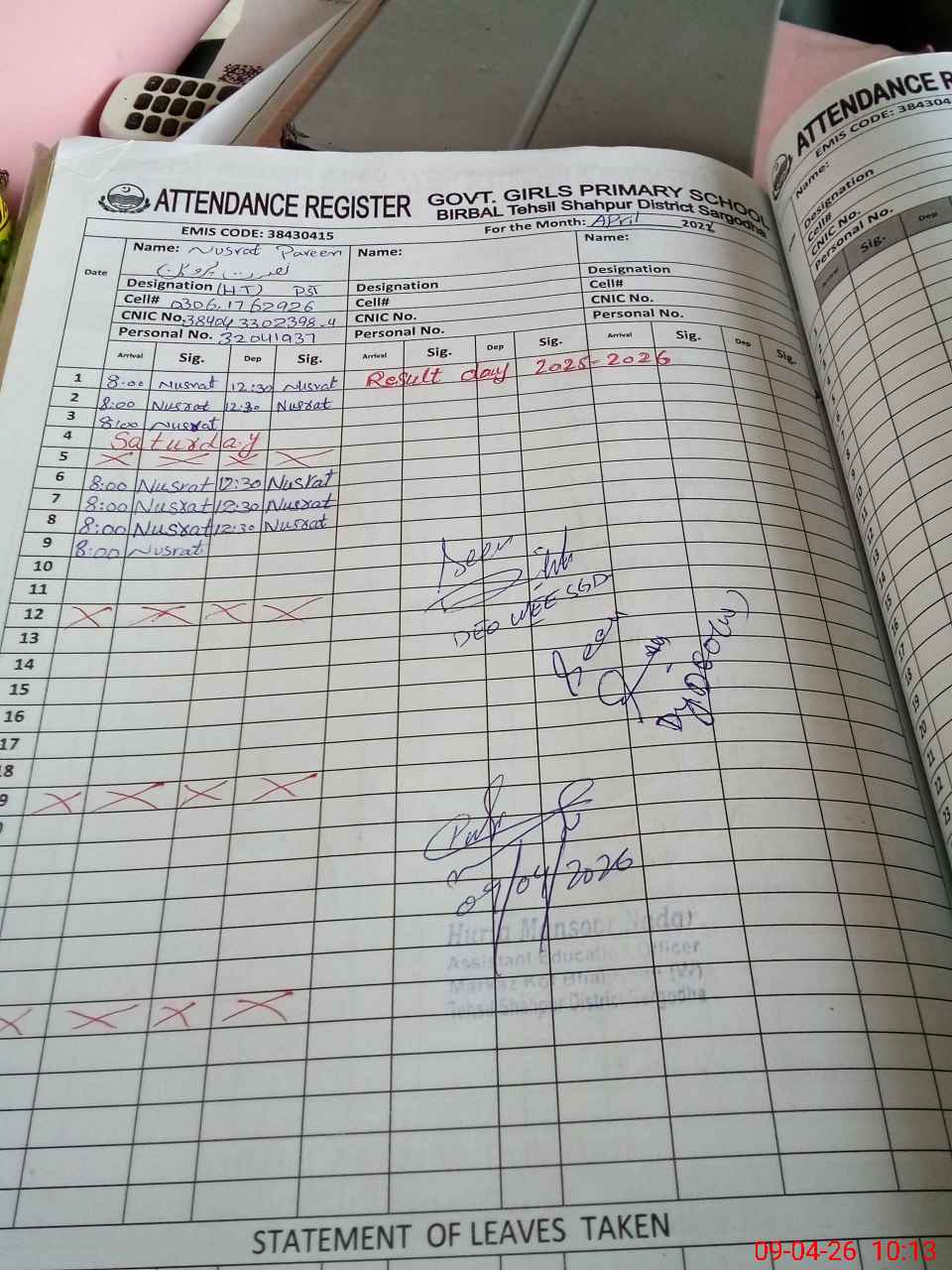 | Name: NU**** PA**** Designation: (School Headmaster's/Headmistress's) PST Phone/Cell Number: 03**** |