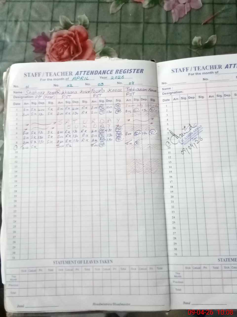 | Leave | Duty | Absent | Maternity | Medical | Ex- Pak |