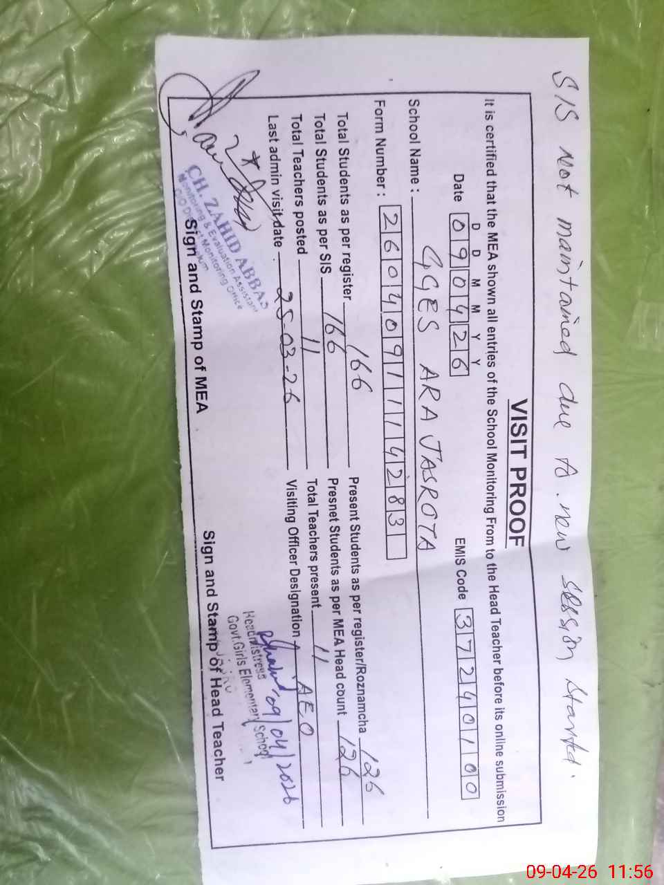 | EMIS Code: 37240100 | Name of School: GGES ARA JASROTA | |||