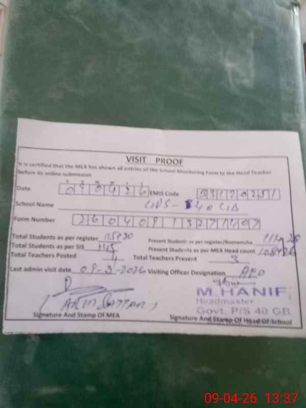 | EMIS Code: 33120251 | Name of School: GPS 40 GB | |||