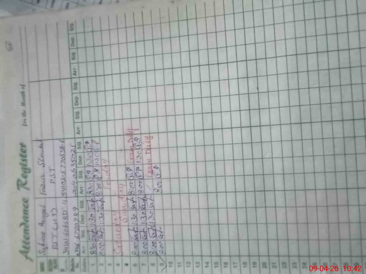 | CNIC | Full Name | Designation | R/C | Absence During Last Calender Month |