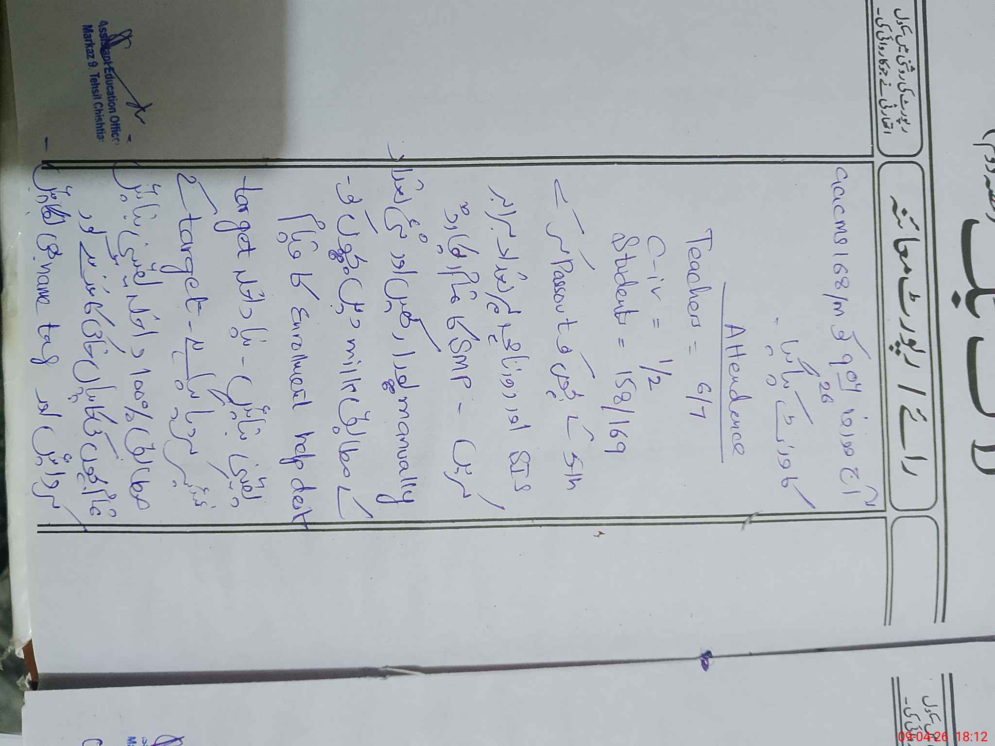 | Attendance Register | Head Teacher | MEA with School | Visit Proof |