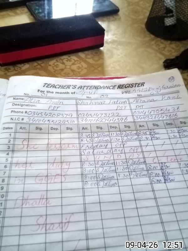 | Name: AT**** AM**** Designation: (School Headmaster's/Headmistress's) PST Phone/Cell Number: 03**** |
