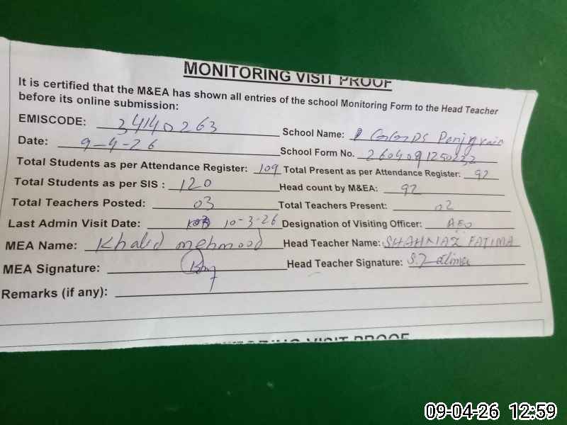 | EMIS Code: 34140263 | Name of School: GGPS PUNJ GARIEN | |||