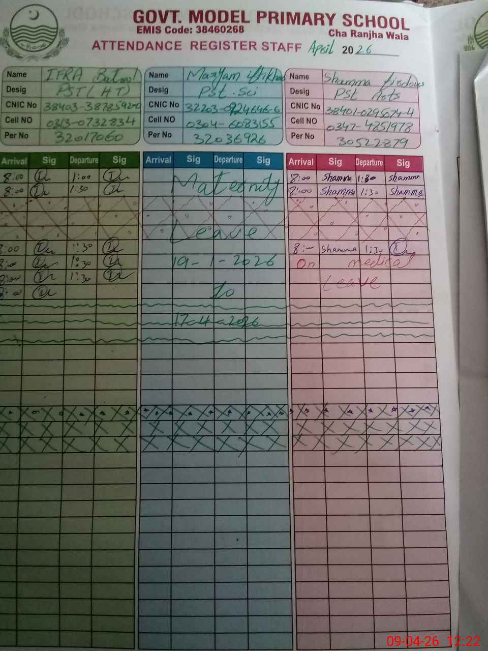| Name: IF**** BA**** Designation: (School Headmaster's/Headmistress's) PST Phone/Cell Number: 03**** |