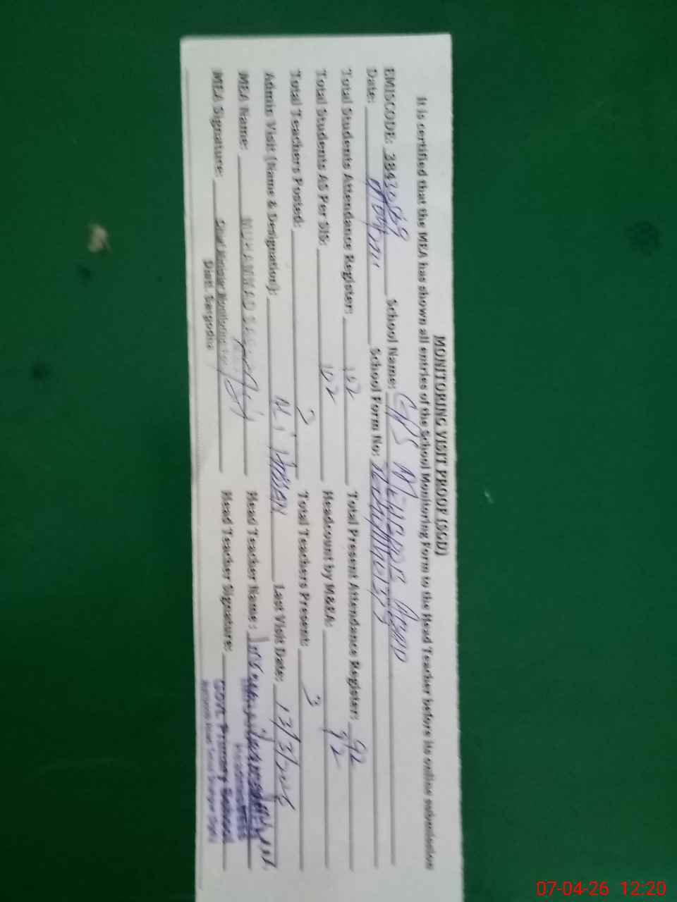 | EMIS Code: 38430569 | Name of School: GPS MAHBOOB ABAD | |||