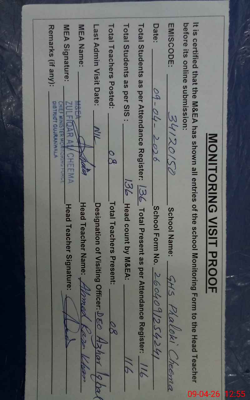 | EMIS Code: 34120150 | Name of School: GHS PHALOKI CHEEMA | |||