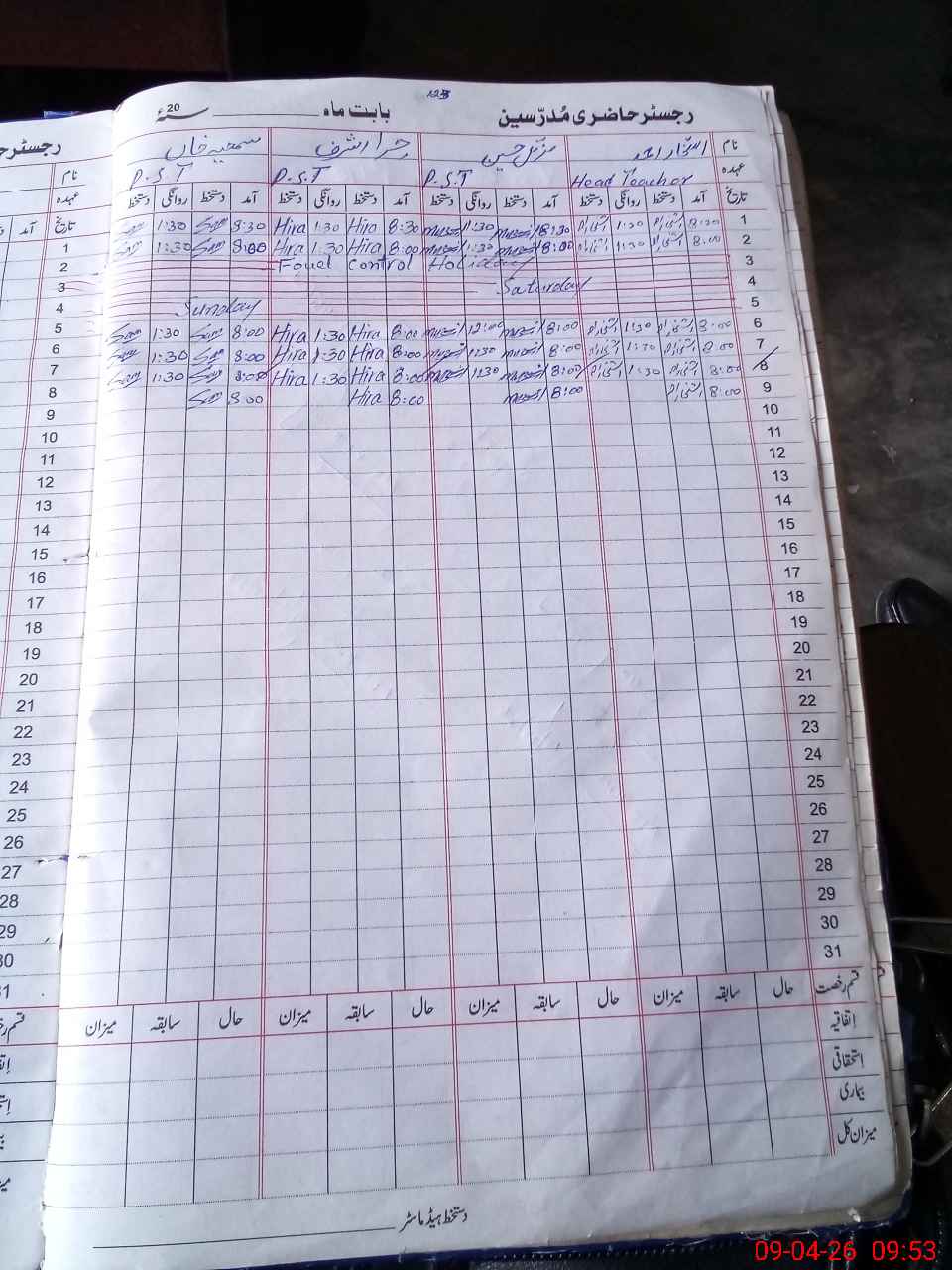 | CNIC | Full Name | Designation | R/C | Absence During Last Calender Month |