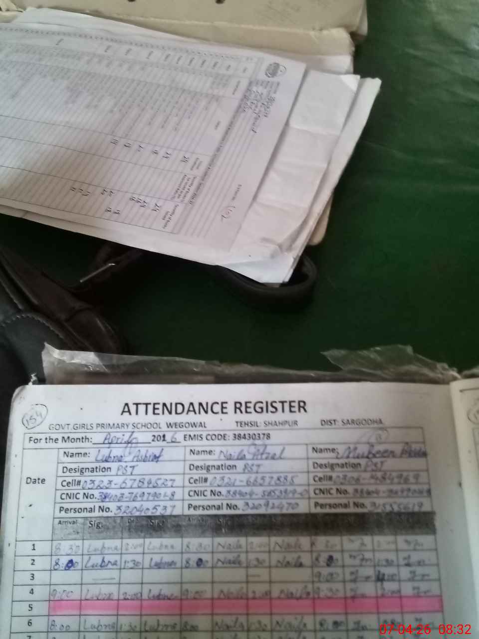 | District: SARGODHA | Tehsil: SHAHPUR | Markaz: WEGOWAL - FEMALE | Level: Primary | |