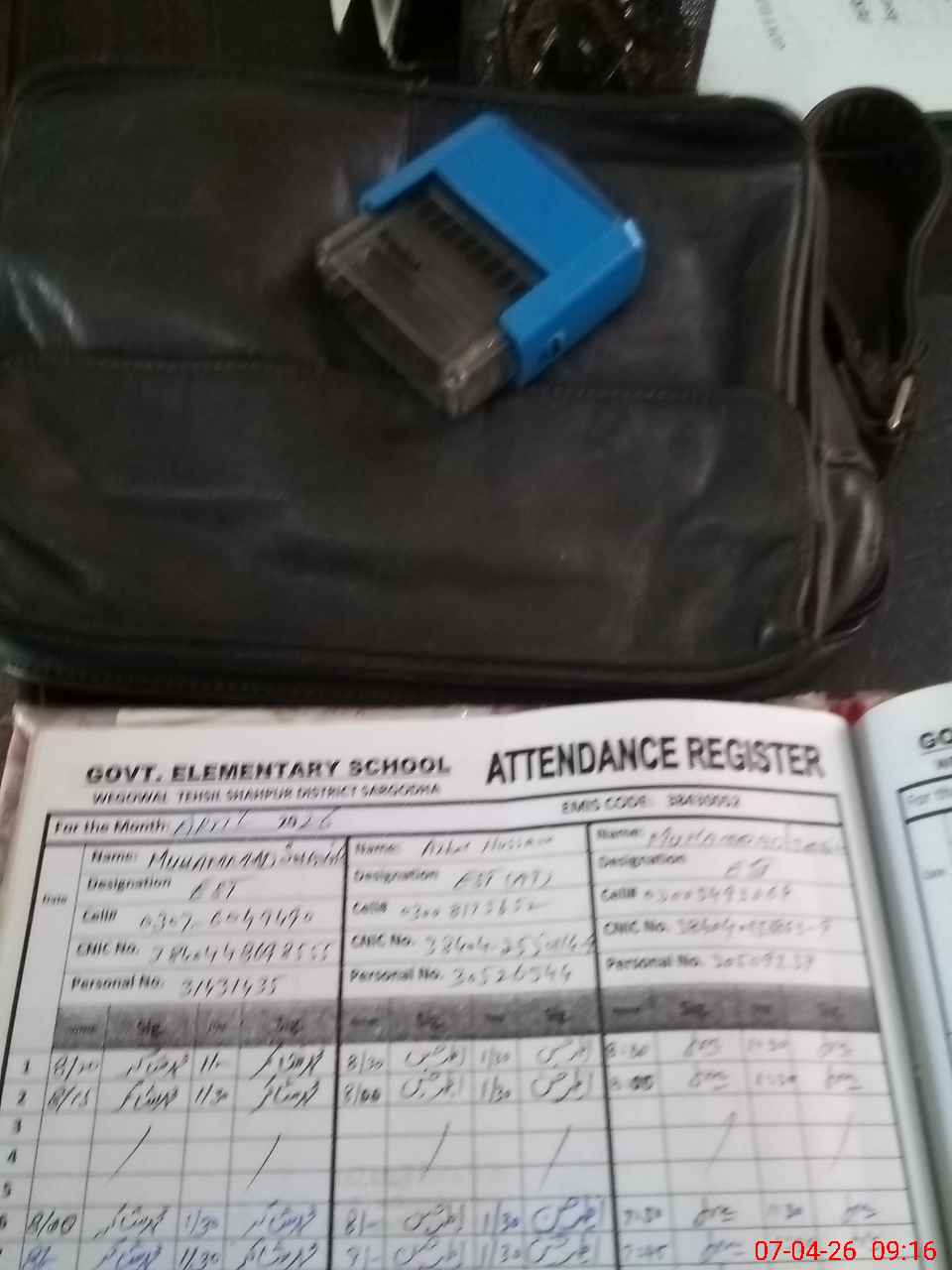 | Name: MU**** SH**** Designation: (School Headmaster's/Headmistress's) EST IC Phone/Cell Number: 03**** |