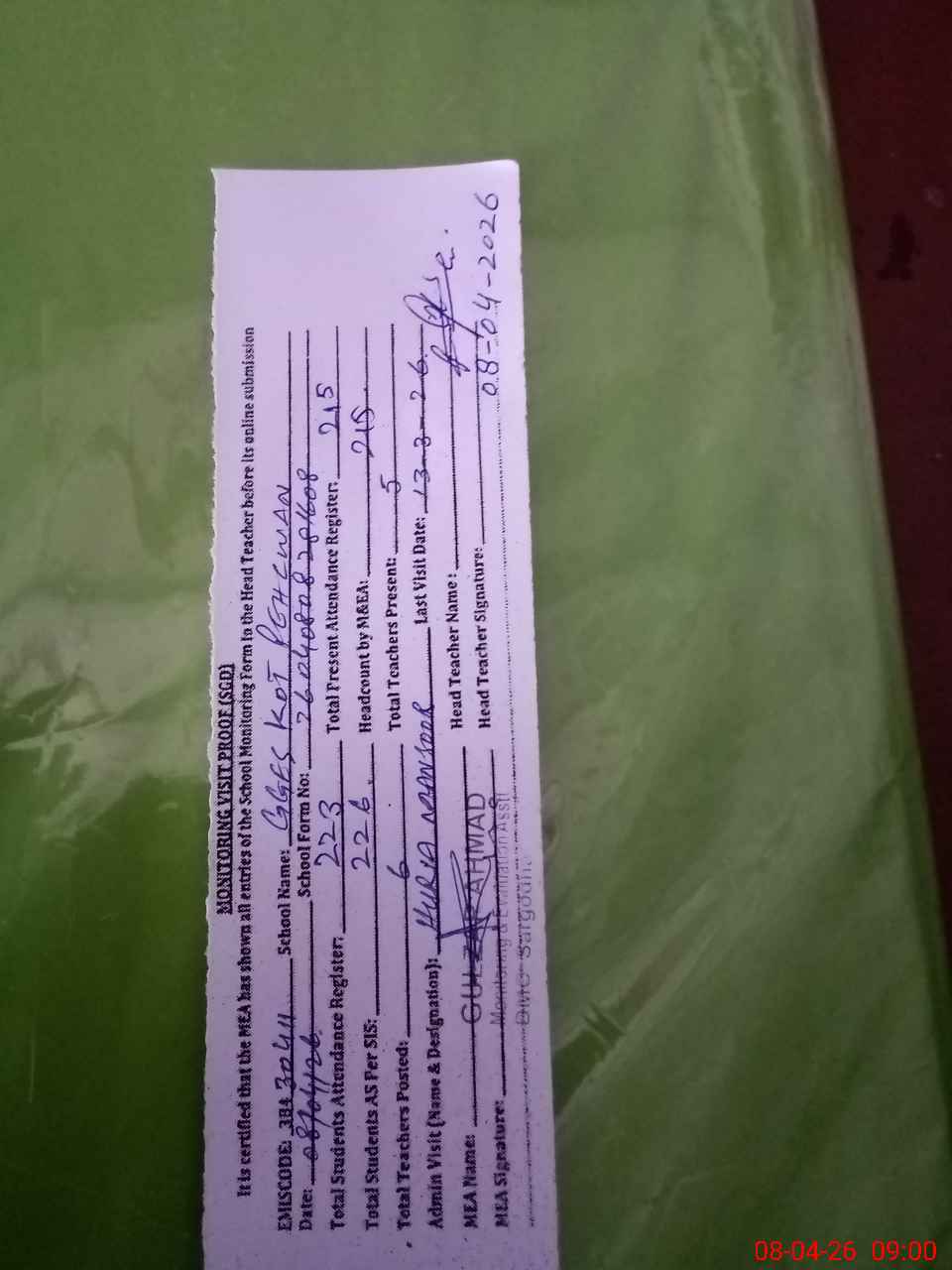 | EMIS Code: 38430411 | Name of School: GGES KOT PEHLWAN | |||