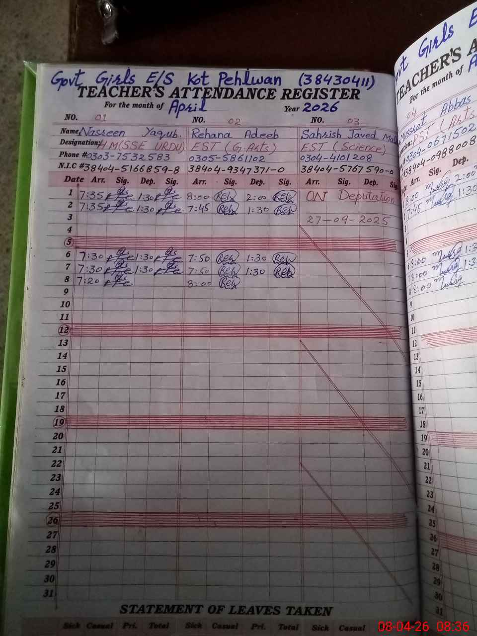 | 38**** | Sh**** Ha**** | PST Arts | Regular | 0 | 0 | 0 | 0 | 0 | 0 | 0 | 0 | 0 | Exam Duty |