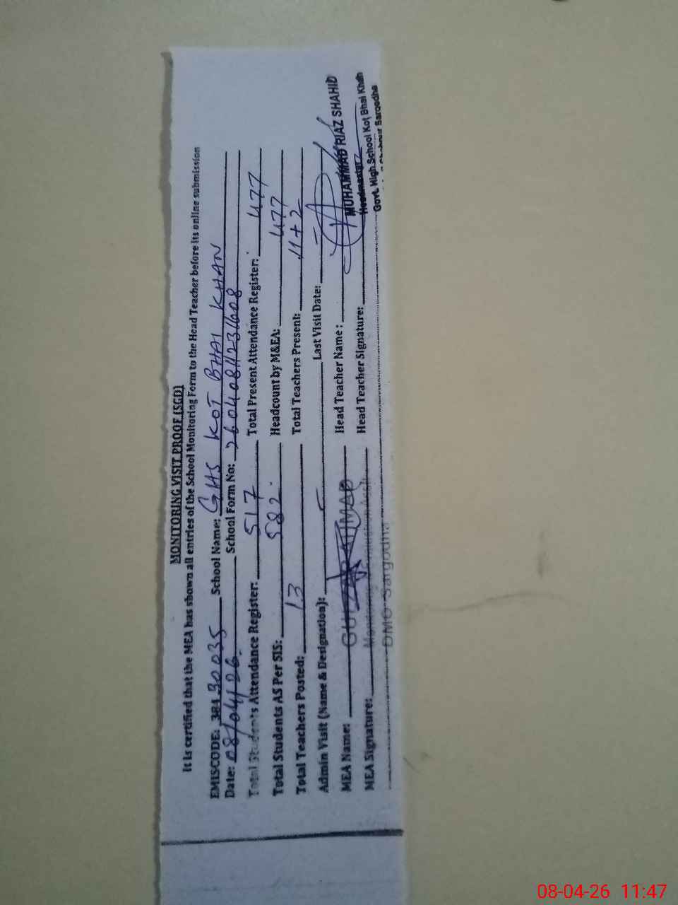 | EMIS Code: 38430035 | Name of School: GHS KOT BHAI KHAN SHAH PUR | |||