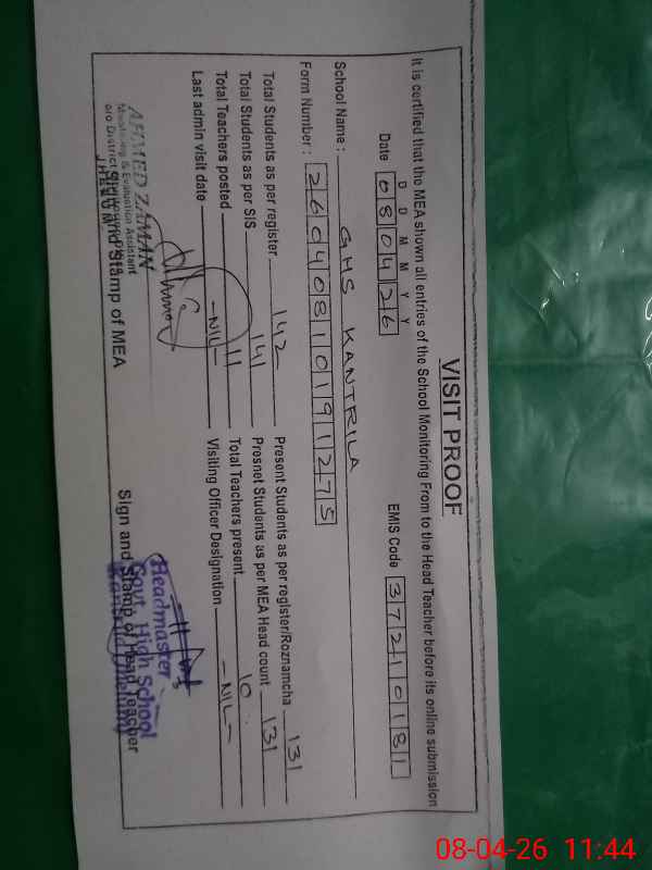 | EMIS Code: 37210181 | Name of School: GHS KANTRILA | |||