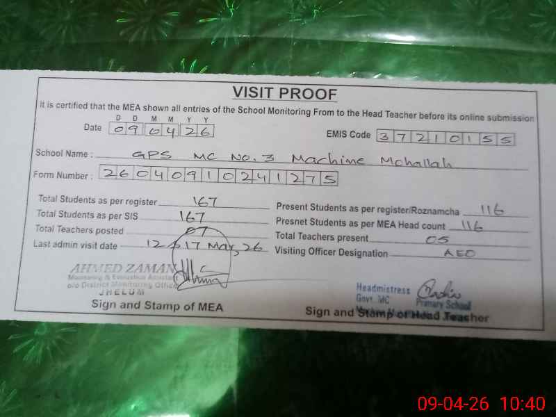 | EMIS Code: 37210155 | Name of School: GPS MC NO.3 MACHINE MOHALLAH | |||